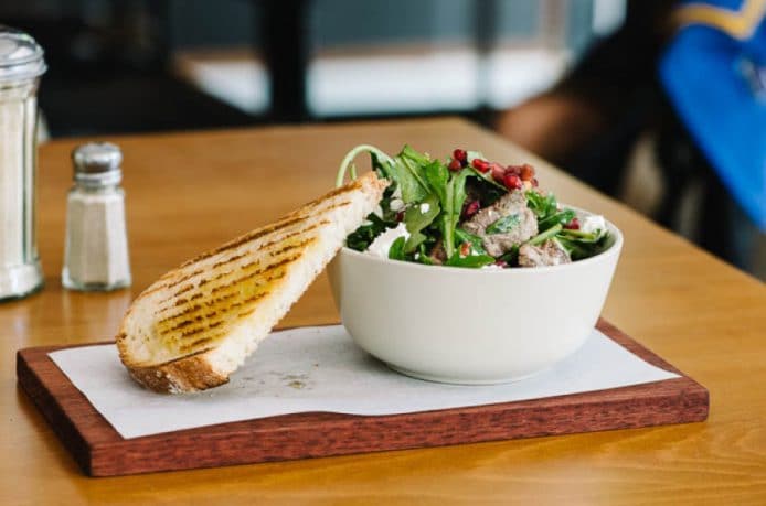 Originally offering a sophisticated Australian menu, The Office Space Director Boris Tosic famously demanded Mario “cut the fancy crap” and cook him something his Greek mum would be proud of.  Enter Mario’s Greek salad and gyros. The pita is sourced from an artisan Greek baker (Golden Top) who excels in a thick thick, fluffy, flat bread that redefines this dish.  You can choose the traditional chicken, lamb or vege and haloumi, or branch out to pulled pork and even soft shell crab.  All come with fries, onion and tzatziki wrapped up in a pita parcel that will have you longing for Santorini.