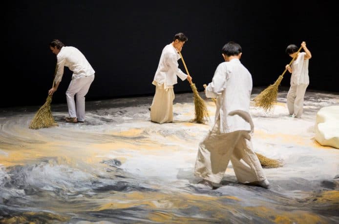 At the remote end of the island, Chiharu Shiota explores complex relationships between body and mind within a darkened former convict sandstone dwelling by weaving a dense web comprising thousands of metres of black thread around metal-framed beds. Trapping memories of the ghosts of spirits passed, Shiota creates a dreamlike place that exists between sleep and wakefulness. At the “Embassy of Disappearance,” Lee Mingwei painstakingly recreates Picasso’s Guernica as a large-scale floor installation in fine coloured sand, only to be walked upon and swept up in an act demonstrating the cycles of creation and destruction.