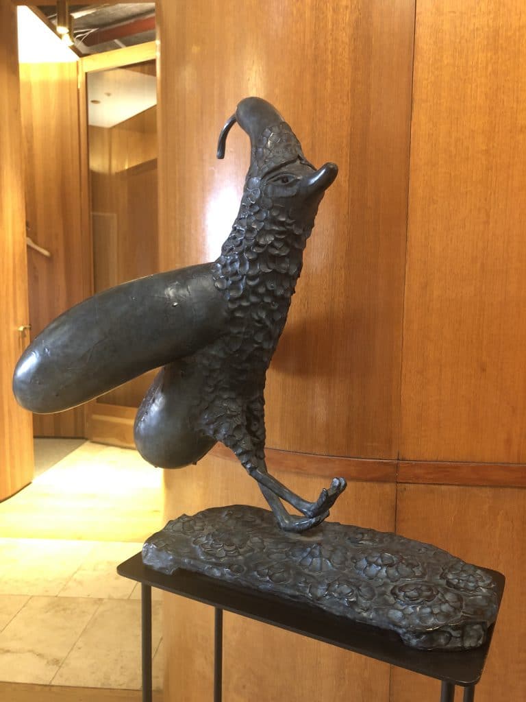 Campbell now lives in Bonny Doon in Northern California and is a member of the American artist collective Beautiful Losers, a bi-costal collective inspired by various aspects of street art culture, including graffiti, skateboarding, punk and hip-hop music. The bizarre bronze bird aptly named Charles that is a part of the collection at Paramount by The Office Space is a part of a 2011 series entitled Capture and Release that was exhibited at Half Gallery in New York City.